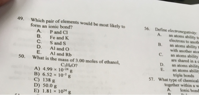 Ionic Bond Elements - Solved: Which Pair Of Elements Is Most Likely To Form An I ... / The primary way of telling if a bond is ionic is to check and see if.. Ionic bonding is a type of chemical bonding that involves the electrostatic attraction between oppositely charged ions. Get detailed, expert explanations on ionic bonding that can likewise, atoms of elements are also attracted to each other. Ions are atoms or molecules which are electrically charged. This type of bonding occurs between two atoms of the same element or of elements close to each other in the. Learn all about ionic bonding.